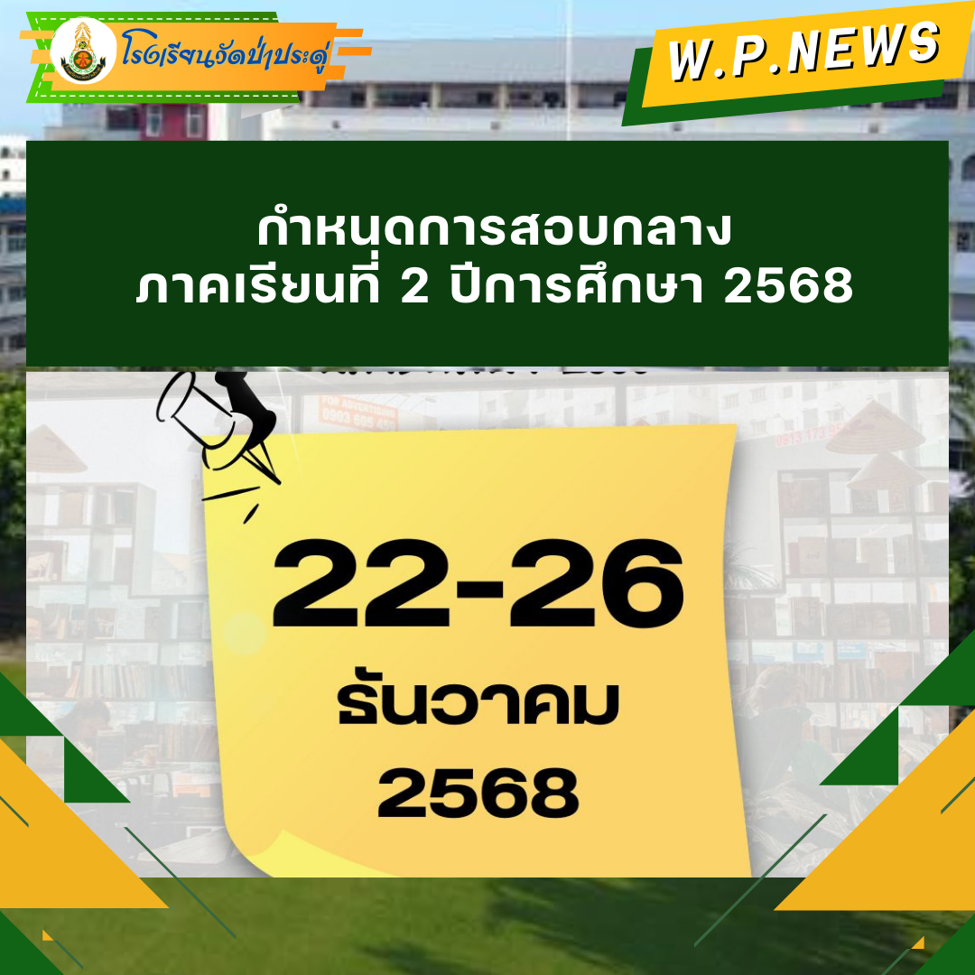 ประกาศโรงเรียนวัดป่าประดู่ เรื่อง แจ้งกำหนดการสอบกลางภาคเรียนที่ 2 ปีการศึกษา 2568   : 11