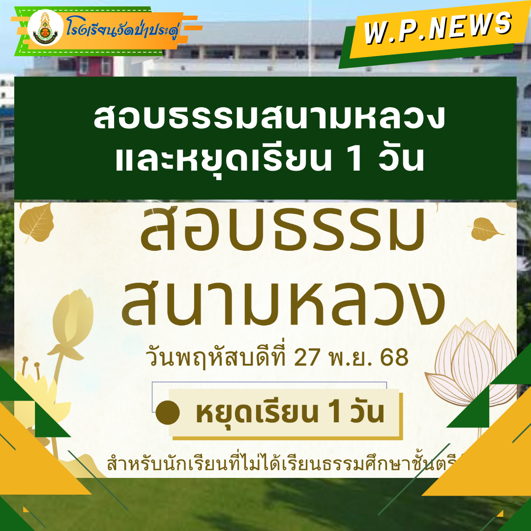 แจ้งการสอบธรรมสนามหลวงและการหยุดเรียน 1 วัน