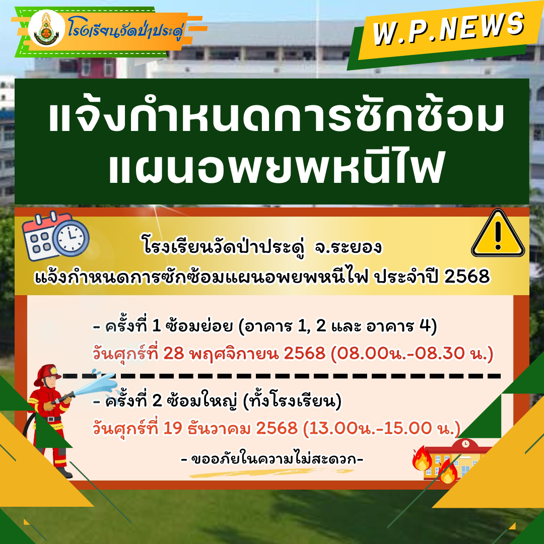 แจ้งกำหนดการซักซ้อมแผนอพยพหนีไฟ ประจำปี 2568