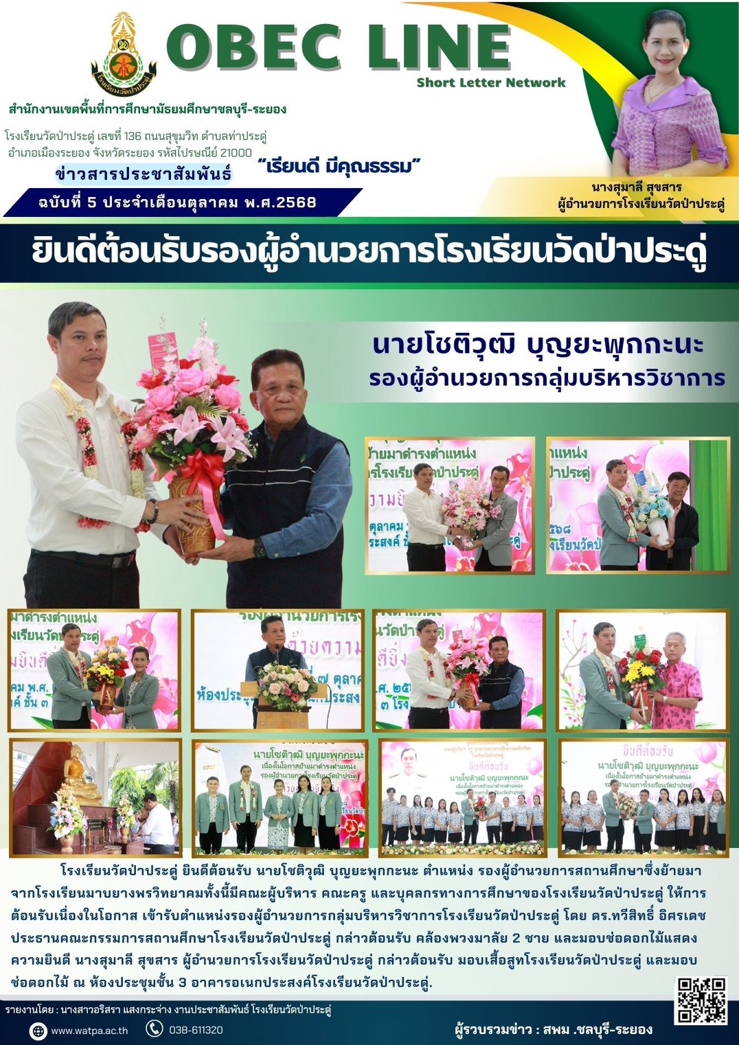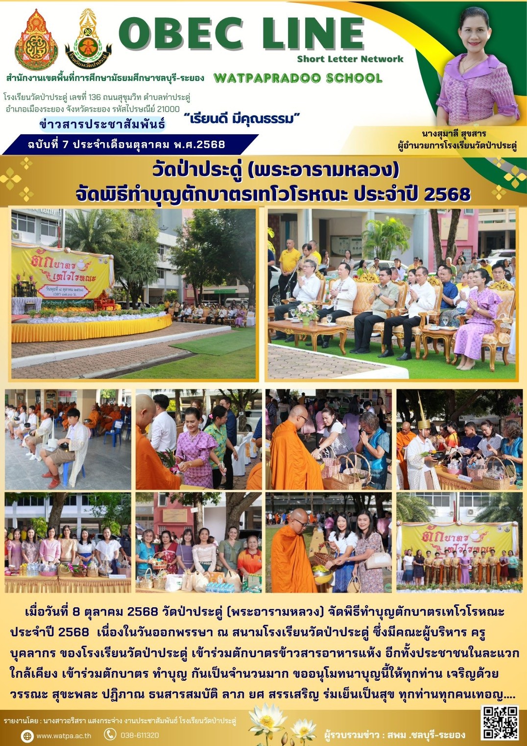 | ประกาศโรงเรียนวัดป่าประดู่ เรื่อง ประกาศผลการสอบคัดเลือกบุคลากรเพื่อเป็นลูกจ้างชั่วคราว ตำแหน่ง ครูอัตราจ้างภาษาอังกฤษและครูอัตราจ้างสุขศึกษา : 320 | |